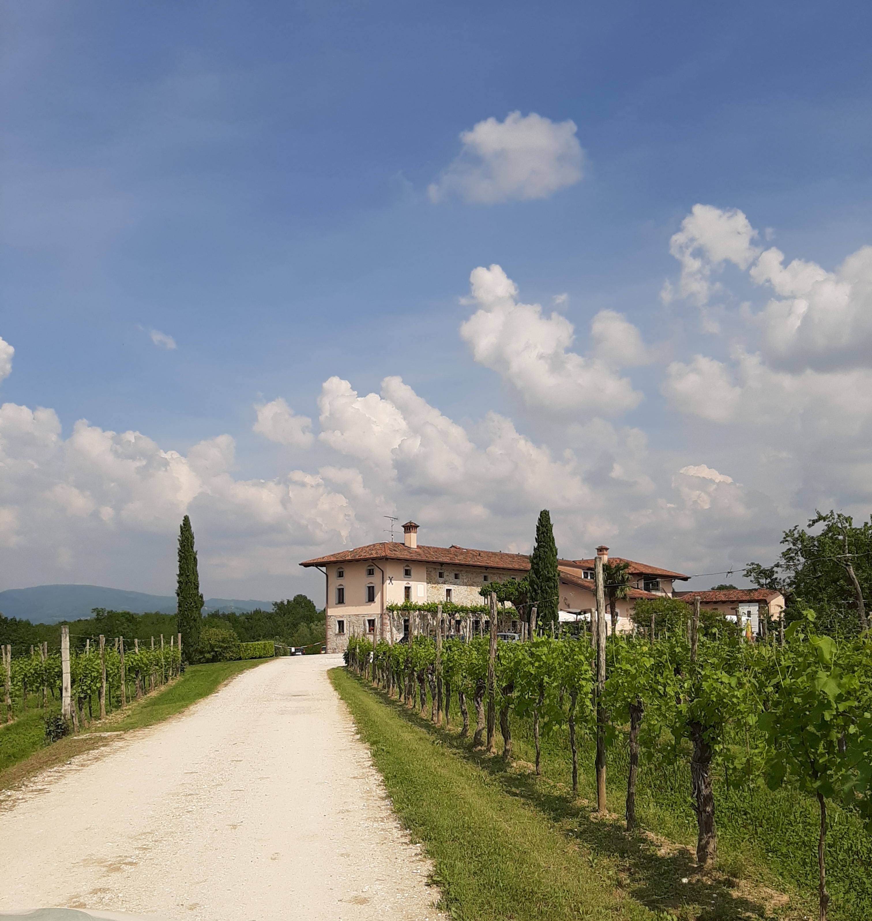 Seuraavaksi siirryimme kohti Udinea, tai tarkemmin Cividale del Friulin aluetta, jossa vierailimme kahdella viinitilalla. Ensimmäinen oli nimeltään Vigne del Malina, joka sijaitsi pellon laidalla, ja mistä oli kaunis näkymä vuorille, mutta jonka viinit eivät olleet mainitsemisen arvoisia. Itseasiassa olin vähän tyrmistynyt, miten huonoja viinejä heillä oli, ja meidän maisteluviinimme jäivät laseihin. Viinitila oli kyllä iloksemme järjestänyt mahdollisuuden käydä tutustumassa polkupyörillä viinialueeseen, jonne lähetimme esiteinimme, joka palasi kuitenkin iloisena takaisin.