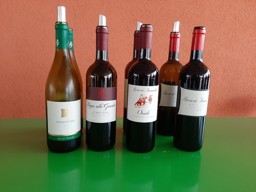 Varsinkin Poggio alla Guardia-viini teki minuun vaikutuksen. Viini kypsytettiin ainoastaan teräksisessä tankissa, eikä siis käynyt tammitynnyrissä, jonka vuoksi se oli punaviiniksi teräksisen raikas. Myös Ornello oli yllättävän monipuolinen; aromeissa oli mausteita ja mustaherukkaa, sekä orgaanisuutta. Viinin tanniinit olivat puolestaan nuorekkaat ja maku elegantti. Rocca di Frassinello-viinin tuoksut olivat Ornelloakin monipuolisemmat ja maku harmonisempi. Rocca di Frassinello-viini kestää viinikaapissa useita vuosia, ja meillä on itse asiassa kyseinen viini edelleen viinikaapissa korkkaamatta.