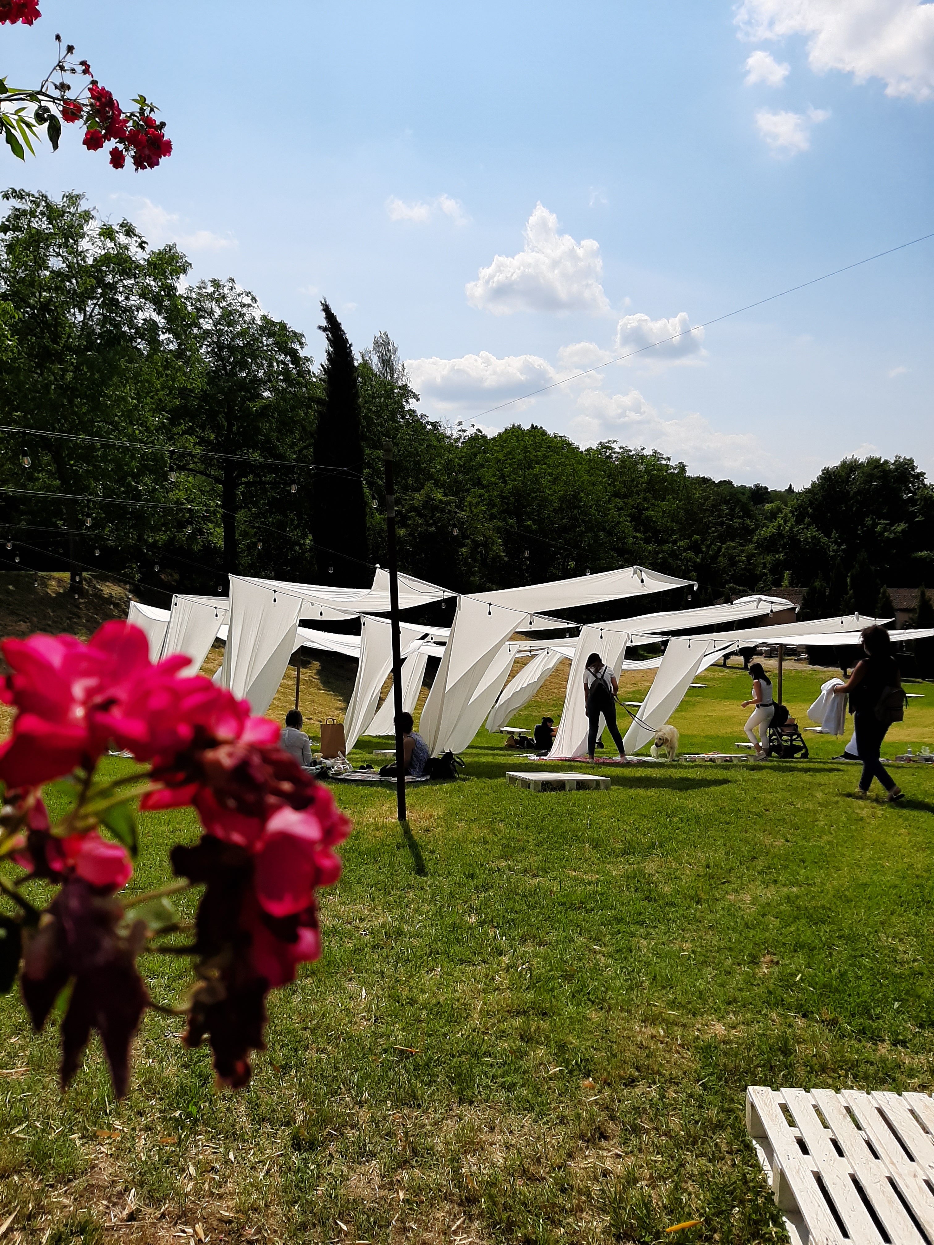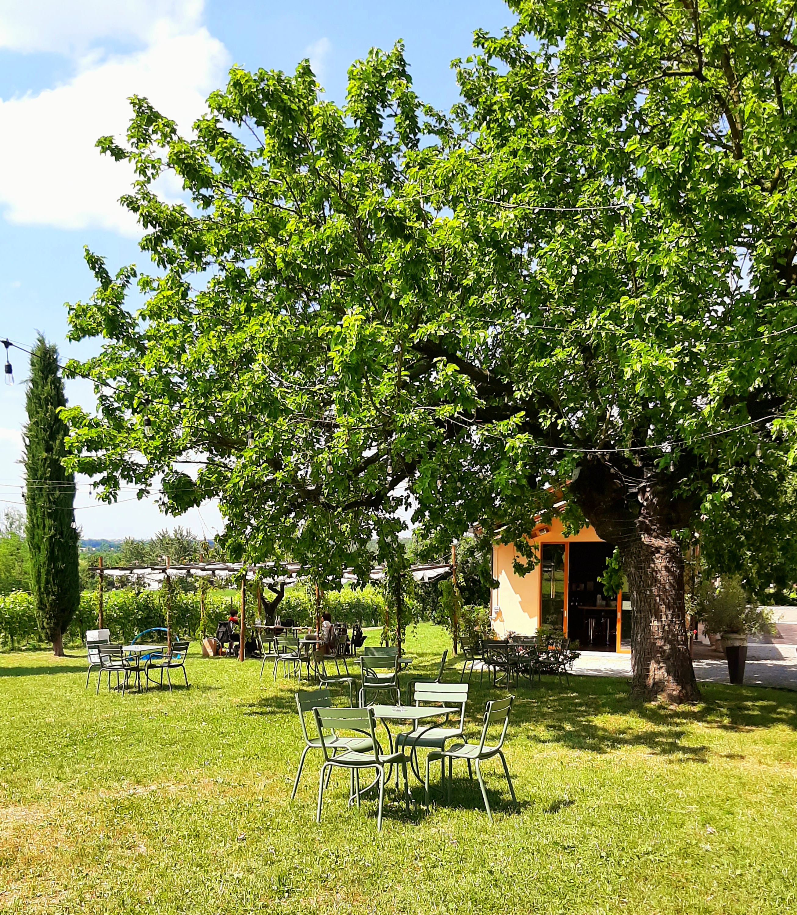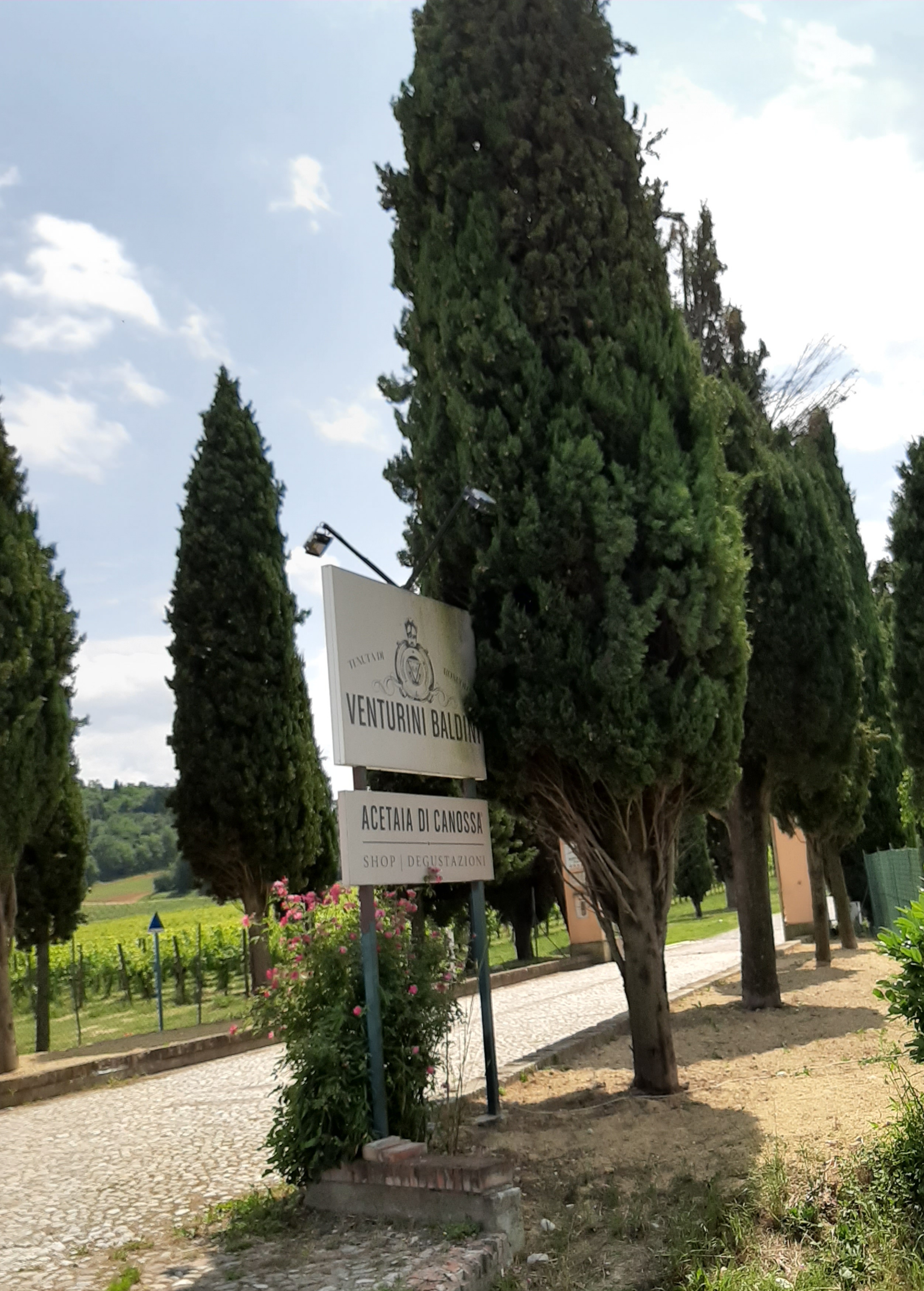 Olen haikaillut viinitiloille, mutta ymmärrettävästi ne ovat olleet tiiviisti suljettuina. Mutta koska viime aikoina ravintolat ja kahvilat ovat avanneet ovensa, mietin mitä tapahtuu perinteisellä viinitilojen avointenovien päivänä toukokuun lopulla: Avaatko ne ovensa vai eivät? Koska emme saa liikkua maankuntamme ulkopuolelle, seurasin lähialueen viinitilojen nettisivustoja. Harmikseni useat viinitilat olivat tilanteen vuoksi päättäneet myydä ainoastaan viiniä, eivätkä järjestää viinimaistelua tai muuta ohjelmaa. Lopulta huomasin, että Venturini Baldini viinitila oli suunnitellut alueelleen picnic tapahtuman: Mahdollisuuden ostaa lounaan, joka sisälsi tilan viiniä. Minähän olin aivan innostunut: Vihdoinkin edes jonkinnäköinen mahdollisuus vierailla viinitilalla.