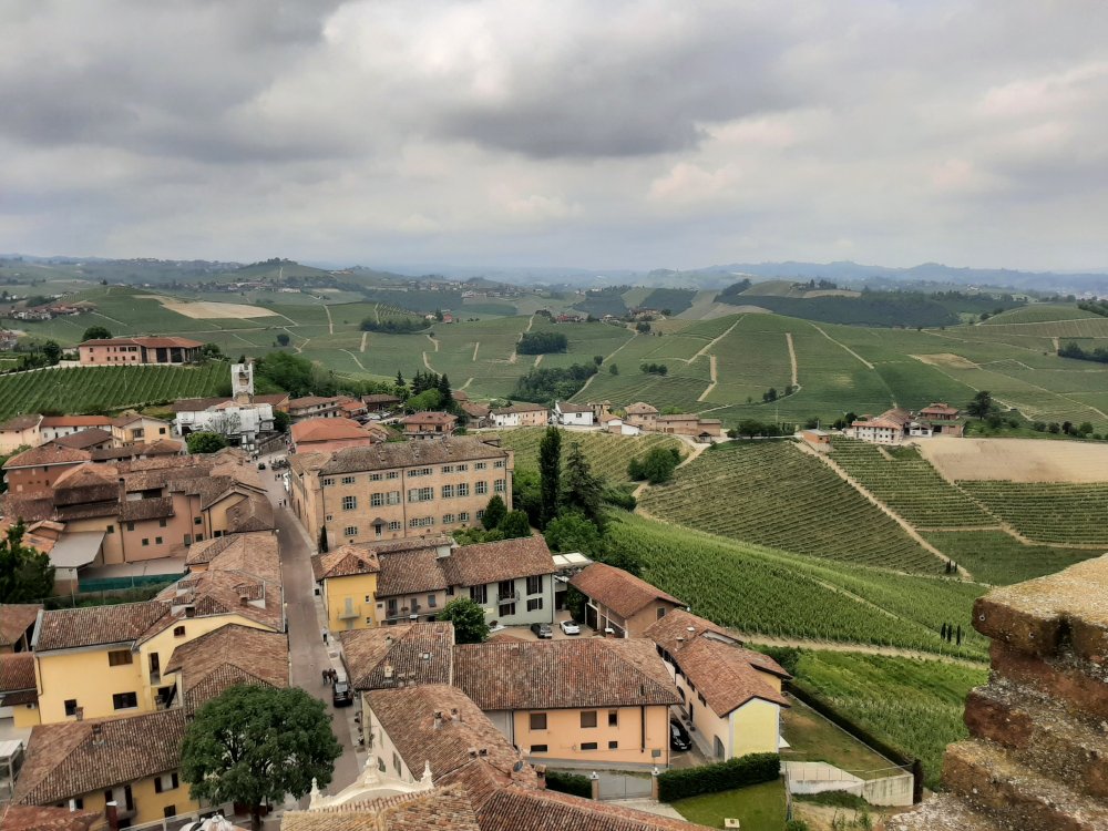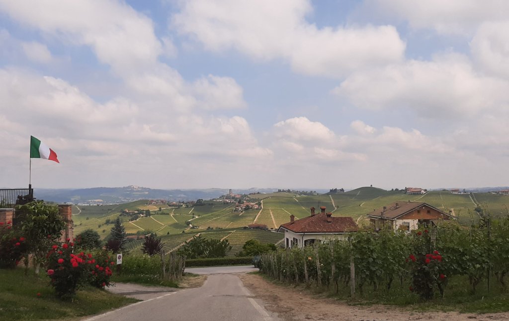 Ja jälleen kerran, kun ajoimme pitkin Langhea, teiden molempien puolien levittäytyvien kukkuloiden viiniviljelmien lukuisuus ihastutti ja ihmetytti minua. Ei ollut epäilystäkään, että olimme saapuneet Italian viininviljelyn sydänmaille, sillä maa-alueen jokainen senttimetri oli omistettu viininviljelyyn, ja missä viiniköynnökset eivät kasvaneet siellä sijaitsi viinitila. Oli kevät ja pienet viinirypäleiden alut olivat valmiina kasvamaan upeiksi punaisiksi viinirypäleiksi.