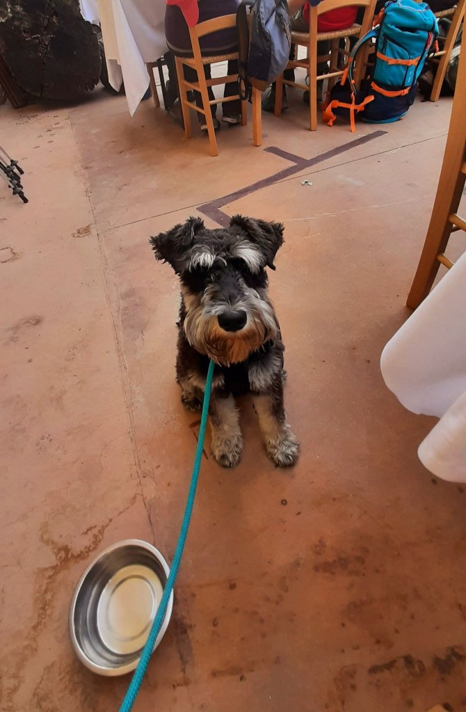 Ja kuinkas se viiniturismi onnistui koiralapsen ja teinin kanssa? Aivan loistavasti. Teini oli kai vain onnellinen, että pääsi pois kotoa ja ihmisten keskelle, eikä mököttänyt lainkaan. Koira oli totta kai hiukan stressaantunut, mutta joka paikassa koiraan suhtauduttiin loistavasti. Hän pääsi ravintoloihin sisälle ja hänelle tuotiin vesikippoa, ja kukaan ei kohottanut silmäkulmiaan, vaikka hän oli mukana viinikierroksilla. Eikä koiramme ollut edes ainoa koira, joka harrasti viiniturismia. Italia on näköjään todella viini- ja koiraystävällinenmaa.
