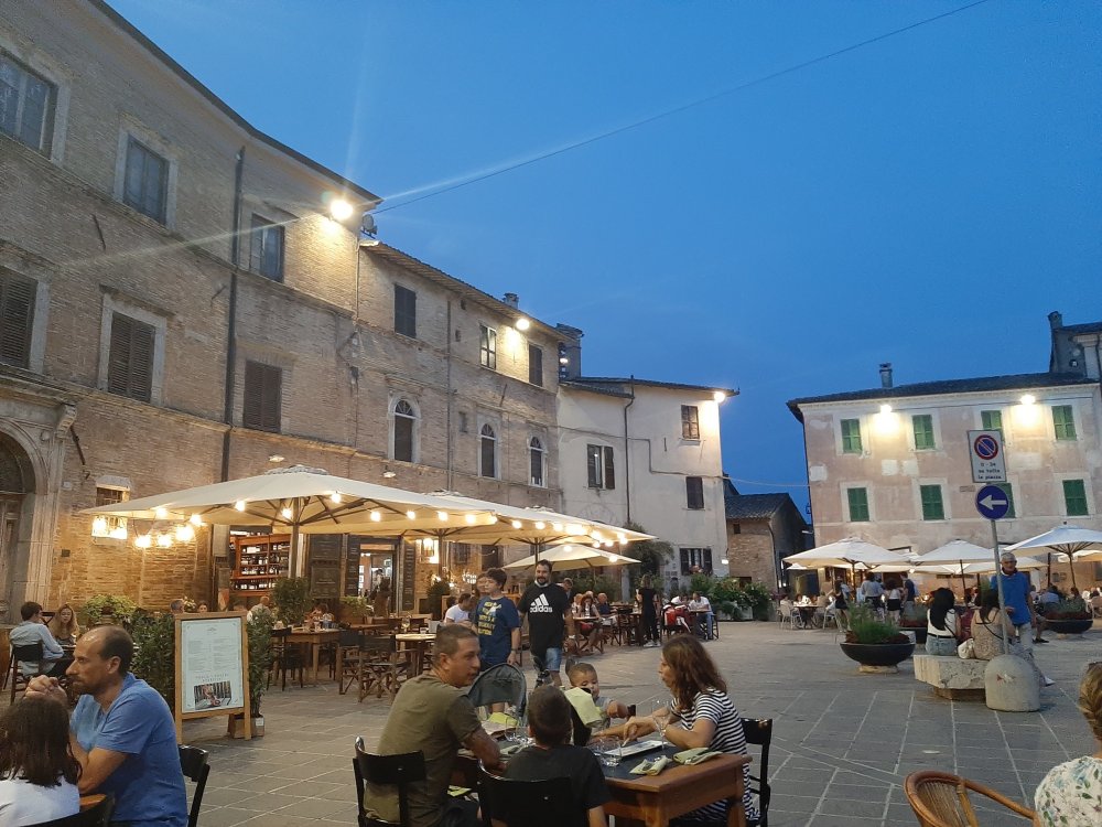 Kaiken kruunasi illallinen Montefalcon keskustassa, joka käsittää pienen piazzan eli aukion. Piazzalla sijaitsi useita ravintoloita ja enoteca, ja jossa illalla tunnelma oli huoleton täyden kuun valaistaessa iltaamme.