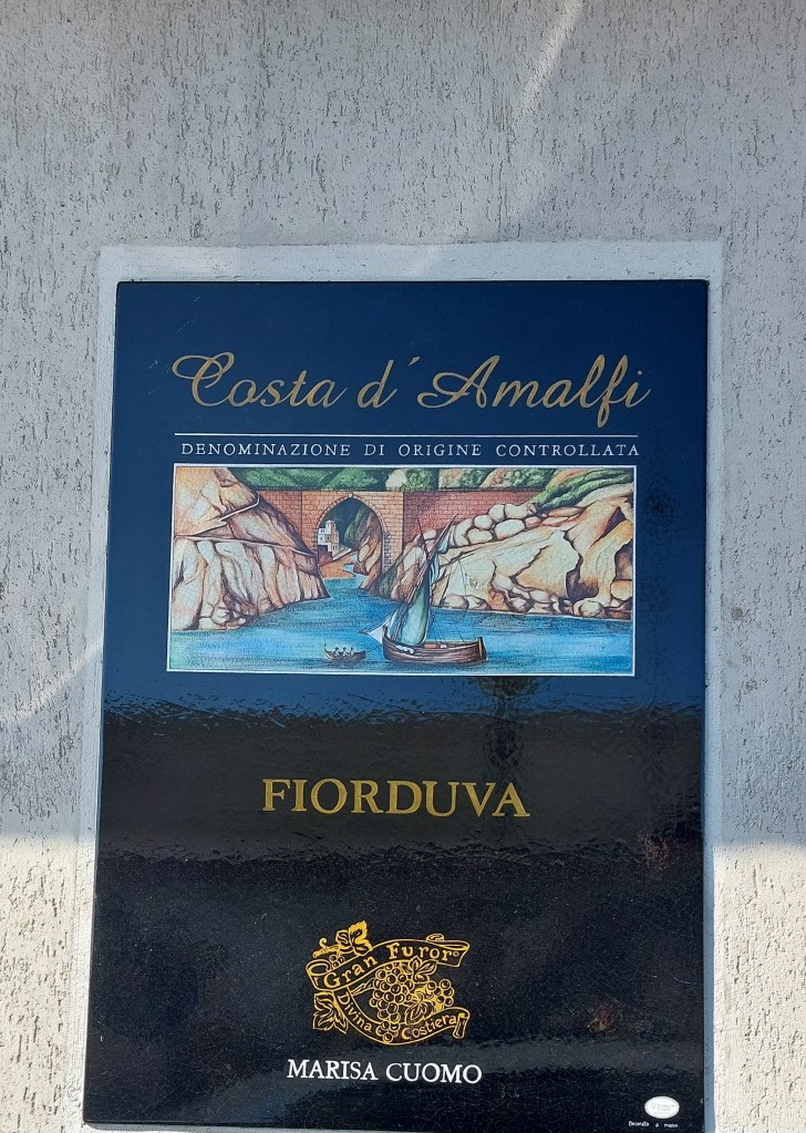 Amalfin jälkeen kipusimme autolla kiemurtelevaa vuoristotietä, ja saavuimme Furroren kylään, missä sijaitsi Marisa Cuomon viinitila, tai paremminkin luola, sillä Marisa Cuomon viinit valmistettiin vuorenseinämään kaivetussa suuressa luolassa, ja ahtaampia viinintuotantotiloja en ollut koskaan aikaisemmin nähnyt. Opas esitteli meille myös kauniin kellarin, missä viinit kypsyivät tynnyreissään.