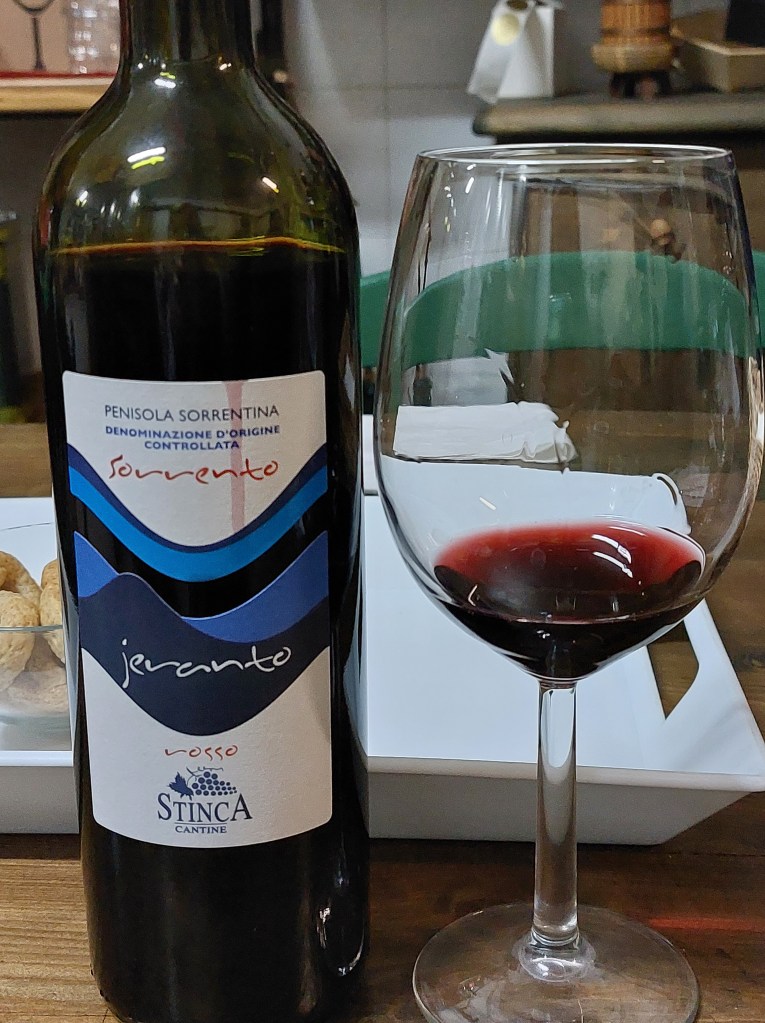 Tilan Falanghina IGT oli falanghinalle tyypillisesti hyvin hapokas, sitruunainen ja mutta samalla lämmin valkoviini. Sen sijaan Jeranto DOC oli ns. blend viini, joka valmistettiin kahdesta Sorrenton alueella kasvavasta viinirypäleestä (70% Falanghina- ja, 30% Greco), jonka vuoksi viini oli laatuluokituksiltaan DOC. Jeranto oli tuoksuiltaan sitruunainen, jopa greipin tuoksuinen, mutta josta löytyi myös aprikoosia. Maultaan se oli sitruunaisen hapokas mutta myös siitä löytyi pehmeyttä ja mineraalisuutta. Maistoimme myös heidän Rosato roséviiniä, joka oli miellyttävä ja jossa tanniinit muistuttivat kaukaisesti olemassa olostaan.