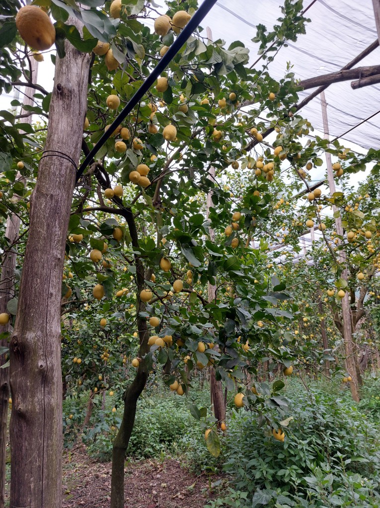 Koska en ollut suunnitellut laisinkaan viinitilavierailua, niin en tiennyt edes mitä odottaa Stinca Cantine-viinitilalta. (https://www.cantinestinca.it/default.asp) Kyseessä olikin vaatimaton viinitila, mutta meidät otettiin ystävällisesti vastaan ja esiteltiin tuotantotilat. Koska viiniviljelmät eivät sijainneet lähistöllä, vaan he viljelivät viiniä toisaalla ja ostivat viinirypäleensä jopa Beneventosta asti, omistaja esitteli meille upean sitruunatarhansa.