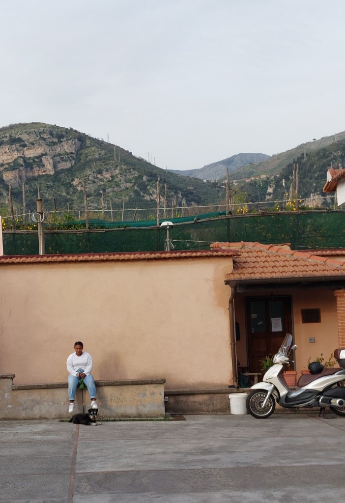 Saavuimme aurinkoiseen Sorrentoon seitsemän tunnin ajomatkan jälkeen. Minulla oli heti tunne, että saavuin kotiin Välimeren välkkyessä kaukana ja vilkkaan liikenteen kiemurrellessa ympärillä. Olin varannut meille huoneen B&B:n Villa Marescasta (https://www.villamaresca.com/) Piano di Sorrentosta. Se sijaitsi hiukan ylempänä vuoristoa keskellä sitruunapuutarhoja, ja sen sisälläkin sijaitsi soma oma sitruuna-appelsiinipuutarha.