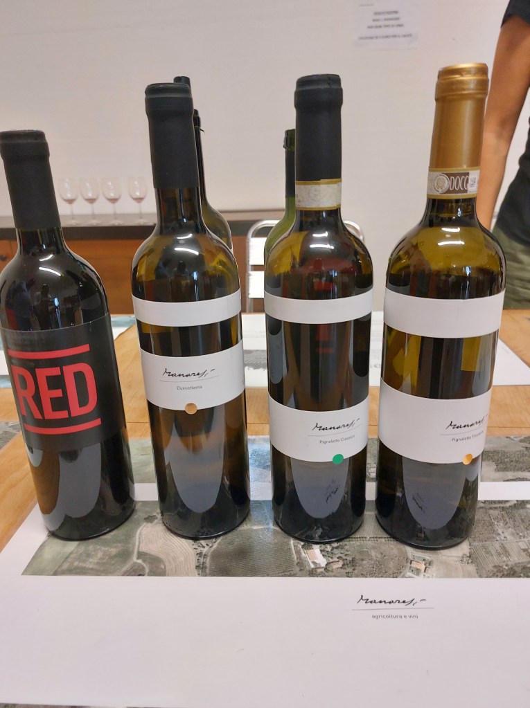 Kun saavuimme ensimmäiselle Maneresin-viinitilalle, ensimmäiset sadepisarat osuivat maahan ja ukkonen jyrisi jossain. Aina ei siis aurinko paista Italiassa, mutta viileys oli minulle tervetullut viikon helteiden jälkeen. Manaresi oli kuitenkin varautunut tilanteeseen järjestelemällä viininmaistelun sisätiloissa. Jälleen kerran huomasin, kuinka paljon juuri nuorisoa oli liikkeellä viinitilalla. Aivan varmasti kyse on hauskanpidosta, mutta kyllähän siinä samalla oppii tuntemaan myös viinejä.