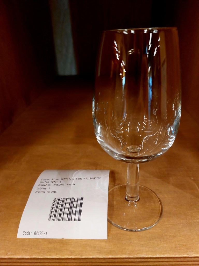 Harmittelin kuitenkin, etten päässyt maistelemaan kunnolla Bardolino-alueen viinejä. Matkalla hotellille näin tienvarrella Zenin viinitilan ja sen myymälän, joten päätimme pysähtyä, ja kysyä olisiko mahdollista maistaa viinejä ilman varausta. Ja kyllä, tämä oli enemmän kuin mahdollista. Zenin viinitilan viinimyymälän aula on pienimuotoinen viinimuseo, ja heti sen jälkeen oli vastassa mitä modernein viininmaistelukonsepti, johon minä olen tähän asti törmännyt Italiassa. Meille annettiin kuponki koodiviivalla, ja pieni viinilasi, ja kerrottiin että saisimme maistaa kuutta valitsemaamme viiniä automaateista. Automaattihanasta tuli juuri sopiva tilkka viiniä, ja kuuden viinin kautta syntyi hyvä kokonaiskuva Zeninin viineistä.