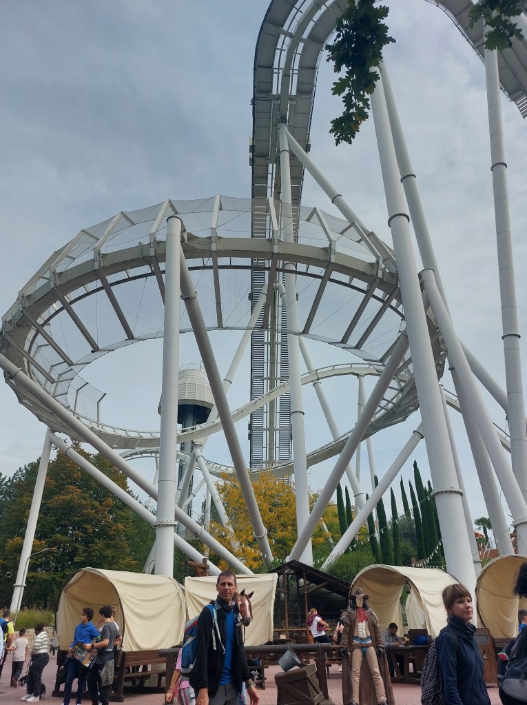 Tapasimme puistossa kummipoikani perheineen ja serkkuineen, ja vietimme hauskan päivän. Minäkin onnistuin välttämään pahimmat laitteet, paitsi viimeisen, jonka luulin olevan lasten vuoristorata, ja sitähän se olikin paitsi liian hurja minulle. No tulihan kiljuttua ja naurettua moniksi kuukausiksi varastoon.