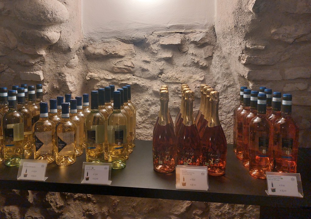 Lopulta päätimme piipahtaa myös hotellin tarjoamalla viinienmaistelussa. Kyseessä oli aivan hotellin kyljessä sijaitseva Roccolo del Lago-viinitilan viinikauppa. Maistoimme muutamaa tilan viiniä: Custozaa (blendissä mukana tällä kertaa Garganega, Trebbiano Toscano, Tocai Friulano e Cortese), Chiarettoa ja Corvinaa. Myös heidän Custonza vakuutti (voi tietenkin olla uutuuden viehätystäkin), mutta tällä kertaa myös Chiaretto. Corvina oli jo oma lukunsa, sillä sen aromit ja täyteläisyys päihitti päivän muut viinit. Roccolo del Lago- sijaitsee Lazisen yläpuolella ja sen viinit ovat biologisia, eli myös biologiset viinit voivat olla todella hyviä. Viinienmaistelu oli lyhyt ja ytimekäs, ja päätimme ostaa muutaman viinin muistoksi, ja kenties joskus vierailla varsinaisella tilalla.