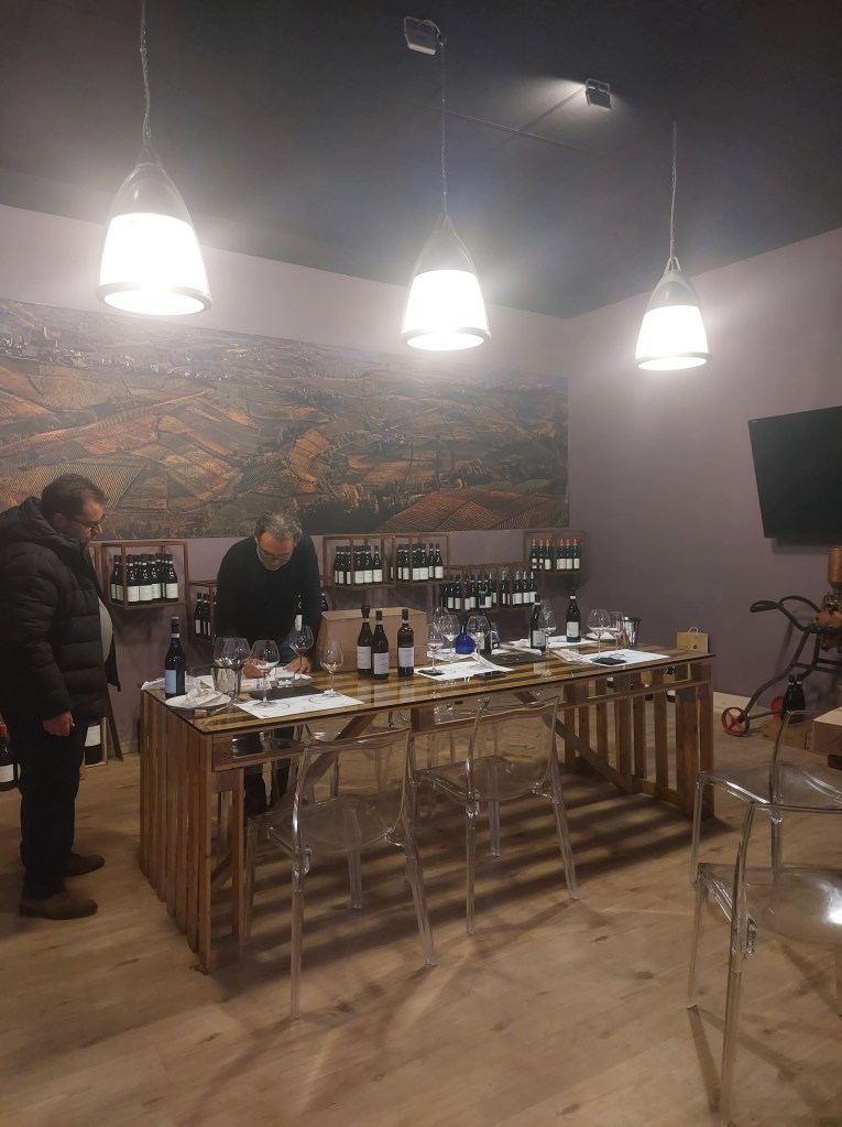 Koska meillä oli paljon tarinoita jaettavana, aika kului nopeasti jutustellessa, meille tuli lopulta kiire osteriaan, josta olimme varanneet pöydän lounaaksi. ( Kyseinen ravintola löytyy Alessandro Rivetton websivuilta ahttps://alessandrorivetto.it/osteria/) Pikaisesti ostimme tilan viinejä joululahjoiksi, ja hyvästelimme Alessandron, joka tuntui jo vanhalta tuttavalta.