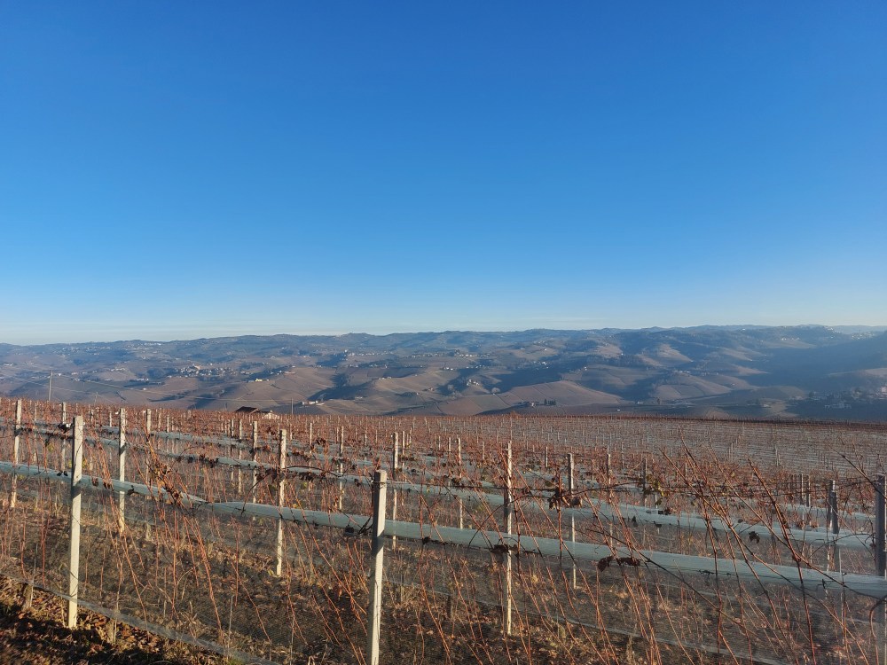 Ajoimme mutkaista tietä ravintolaan, joka sijaitsi Morrassa, Barolon alueen korkeimmalla kukkulalla. Sumu oli muuttunut kirkkaaksi auringonpaisteeksi, ja ihastelimme pikkutarkasti viljeltyjä viiniköynnöskukkuloita lumisten Alppien häämöttäessä taustalla. Koska oli talvi, viiniköynnökset esiintyivät maisemassa paljaan alastomina ja jokseenkin rujoina, mutta tästä huolimatta niissä aisti virtaavan elinvoiman ja ne tuntuivat kuiskivan, että ”me vain lepäämme hetken, jotta jaksamme taas kesällä synnyttää erinomaisia viinejä.”