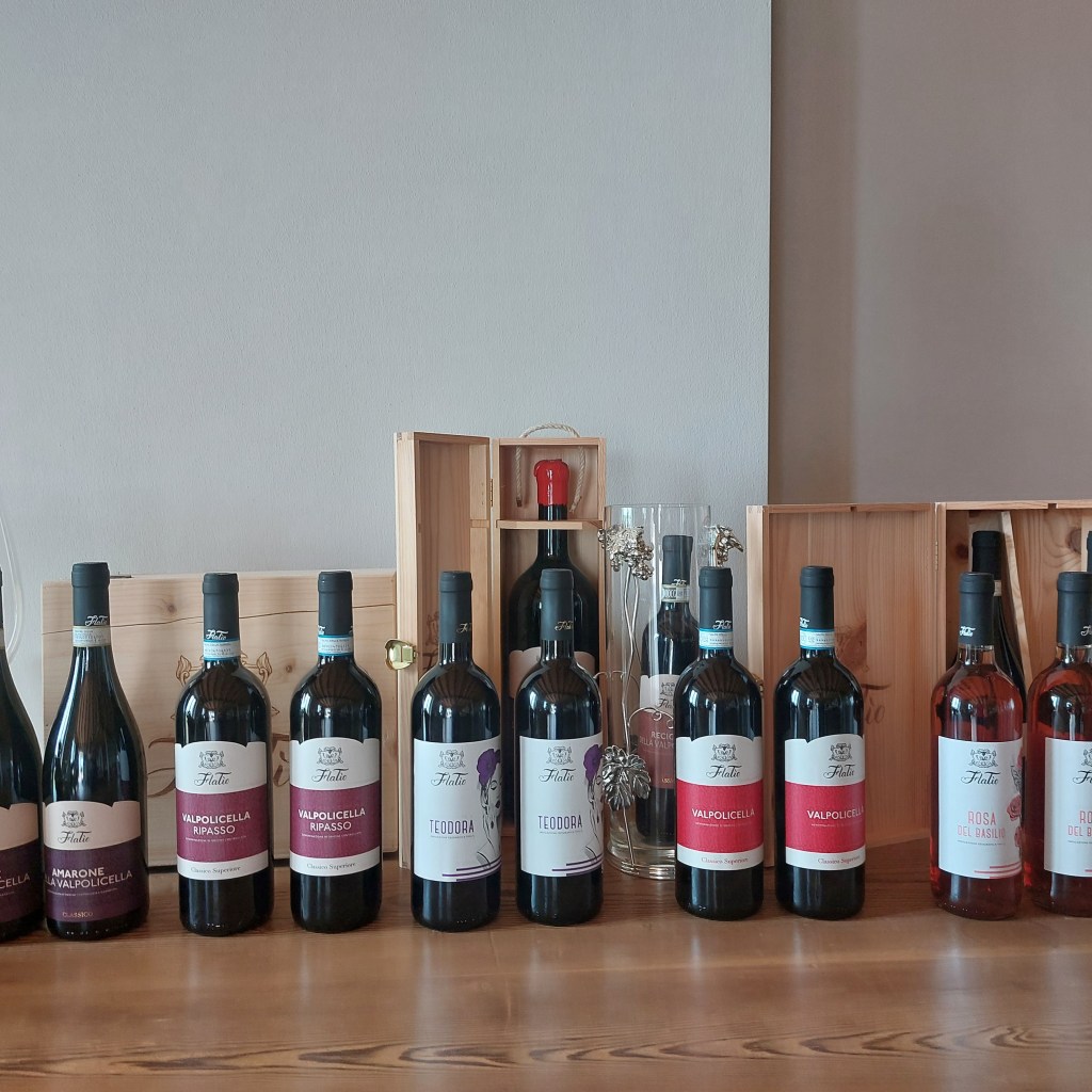 Viinitilalla maistoimme alueen viinirypäleistä Corvinasta, Rondinellasta, ja Molinarasta valmistettuja Valpolicella Classico Superiore, Valpolicella Ripasso, Amarone della Valpolicella ja Recioto, jotka edustivat klassillista Valpolicellan viinejä. Lisäksi maistoin myös tilan tuottamaa valkoviiniä, Bianco Verona IGT Fuori Legge, joka oli valmistettu Corvinasta ja Rondinellasta puristamalla viinirypäleistä rypälemehu pehmeällä puristuksella ja kypsyttämällä terässäiliöissä ilman rypäleen kuoria. Muut tilan Valpolicellan klassikkoviinit olivat hyvin vahvoja ja hedelmäisiä johtuen siitä, että viinien valmistus seurasi ns. appassimento menetelmää, eli viinirypäleet kuivattiin muutaman kuukauden ajan, jolloin viinirypäleiden sokeripitoisuus samoin kuin polyfenolit tiivistyvät tehden viinistä hyvin täyteläisen.