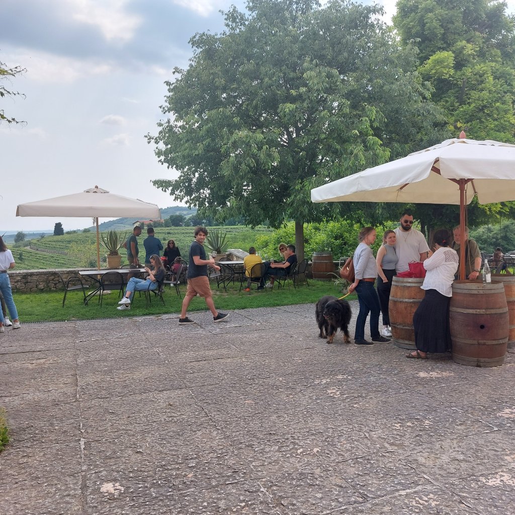 No kaihoisuus sikseen, ja astutaan ensimmäisen viinitilan tunnelmaan. Kyseessä oli Villa Crinen viinitila. Home – Villa Crine – Valpolicella Amarone Recioto wines. Ensin vaikutti, ettei paikalla ollut ketään ja mietimme olimmeko saapuneet oikeaan osoitteeseen, mutta kun pääsimme viinitilan sisäpihalle näimme, että ihmiset jo istuivat viinilasien kanssa maistelemassa viinejä puutarhassa.