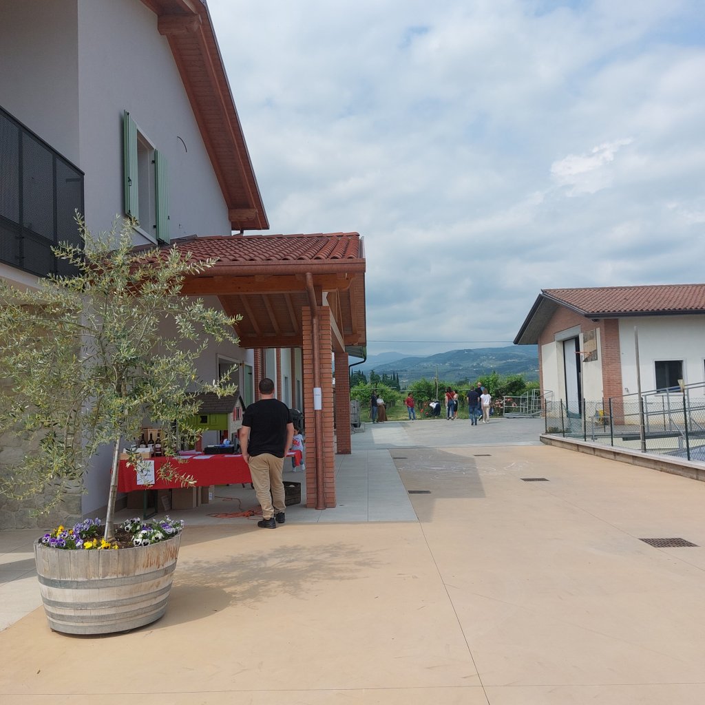 Myös toisen viinitilan Azienda Agricola Flatio http://flatiowine.it/ valitsin sattumalta. Kyseessä oli jälleen perheyritys, nuorempi sellainen. Ulkoisesti rakennus ei muistuttanut viinitilaa, vaan tavallista rivitaloa viiniköynnösten keskellä. Myös täällä pihalle oli järjestetty tuoleja ja penkkejä. Mitä ilmeisemmin tilalla yritettiin uudistaa viinituotantoa, valmistamalla jopa roséviiniä (vain metodo classico puuttui!) perinteisempien alueen viinien Valpolicella Classicon, Recioto, Ripasson ja Amaronen rinnalla. Viinin maistelun hinta 10€ oli todella edullinen, sillä viinejä useita, jopa liikaa. Ostimme kuitenkin lisäksi leikkelelautasen, sillä viinit olivat hyvin alkoholipitoisia.