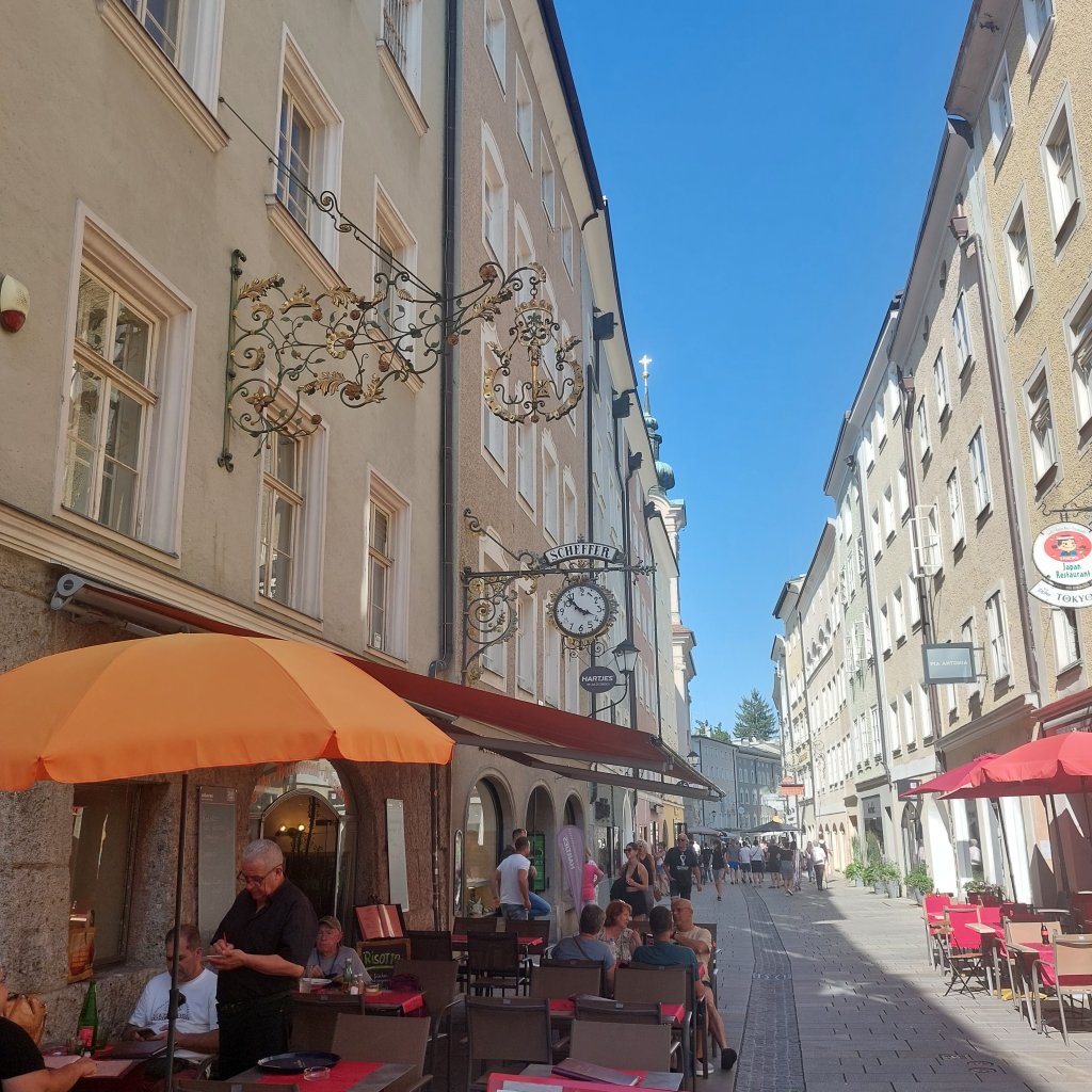 Ajoimme autolla Salzburgin keskustaan, ja löysimme nopeasti parkkipaikan. Salzburgissa oli iltapäivällä vielä todella kuuma, joten otimme rauhallisesti koirankin takia. Kiertelimme kaupungilla, joka oli hyvin siisti ja klassisen kaunis. Tytön kanssa kävimme Mozartin-syntymäkotimuseossa ja vaikka kaupungissa oli turisteja, tunnelma oli paikallinen. Illalla kävimme syömässä Beer Gardenissa, missä oli rento tunnelma. Vaikka en ymmärrä mitään oluista, niin mielestäni täällä olut oli parhainta koko reissussa. Palasimme hotelille auringon laskun aikaa väsyneinä.