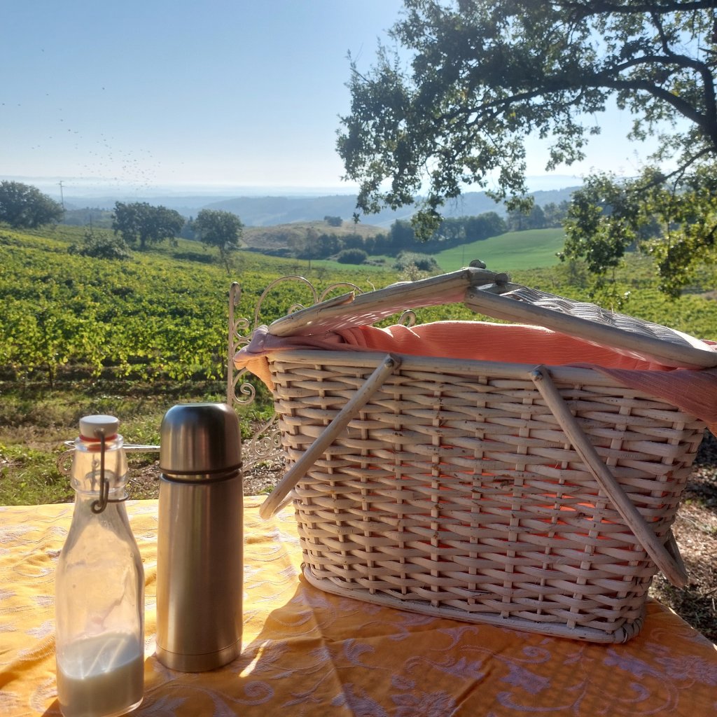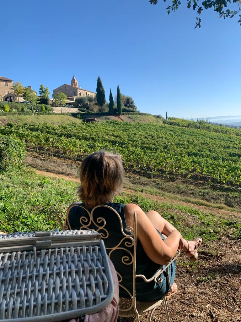 Hotellimme oli kuitenkin keksinyt aivan ihastuttavan aamiaisen: Meille pakattiin koriin aamiaistarpeet ja ohjattiin puistoon, missä nautimme aamiaisen ihaillen kauniita Toscanalaismaisemia ja viinivainioita. Täydellistä sanoisin.
